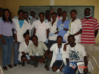 Here is the current clinic staf at Bolosse. That's Lylie, the de facto mayor of Bolosse, on the far left. When she talks, believe you me, people listen. For now, everyone is a volunteer at the clinic, but IMC will be interviewing soon, and will hire six nurses to be the full-time staff. I hope I'm gone by then; I can't bear seeing the faces of the nurses and other volunteers who won't be offered jobs. It will break their hearts; they are desperate to work. And they have all worked hard to get this clinic up and running.